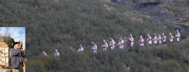 Al llegar al pueblo, comienzan a desfilar por las calles en fila de a uno, o bien por pares . Hacen sonar sus cencerros acompasadamente, manteniendo el paso, aunque rompan el orden para asustar o salpicar con el agua de las fuentes a alguno de los asistentes de vez en cuando.